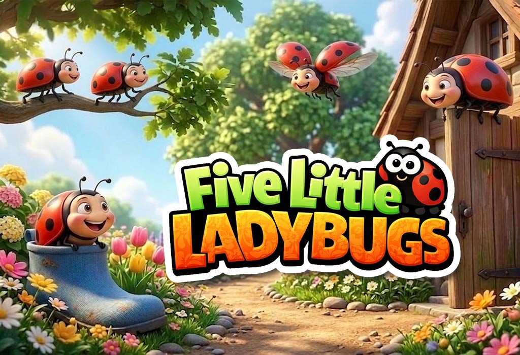 This rhyme is especially enjoyable for toddlers and preschoolers because it combines rhythm, repetition, and counting in a fun and easy way. As children listen and sing along, they begin to understand early math concepts like subtraction and number order. The predictable structure also helps improve memory and listening skills. Parents and teachers appreciate how naturally it supports early learning while keeping little ones engaged. With gentle actions and a sing-song flow, Five Little Ladybugs turns a simple counting lesson into a delightful musical experience children want to repeat again and again.