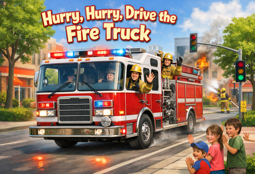 “Hurry, Hurry, Drive the Fire Truck” is a modern action rhyme often used in preschools and early learning settings rather than a traditional folk nursery rhyme. Its exact author and origin are not clearly documented, but it gained popularity through educational platforms, children’s music collections, and online nursery rhyme libraries. The rhyme became widely used because it combines role play with music, helping children learn about firefighters and emergency services in a fun and simple way. Over time, teachers and caregivers have adapted it with gestures and new verses, making it a flexible and interactive learning tool.