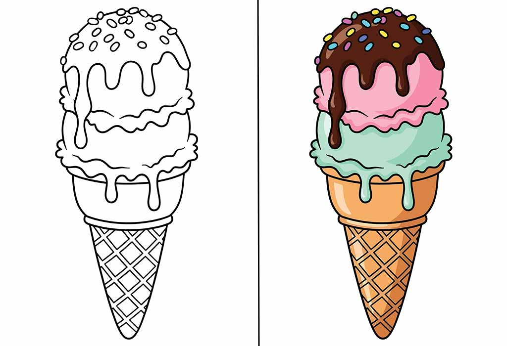 Ice Cream Coloring Worksheets for Preschoolers and Kids