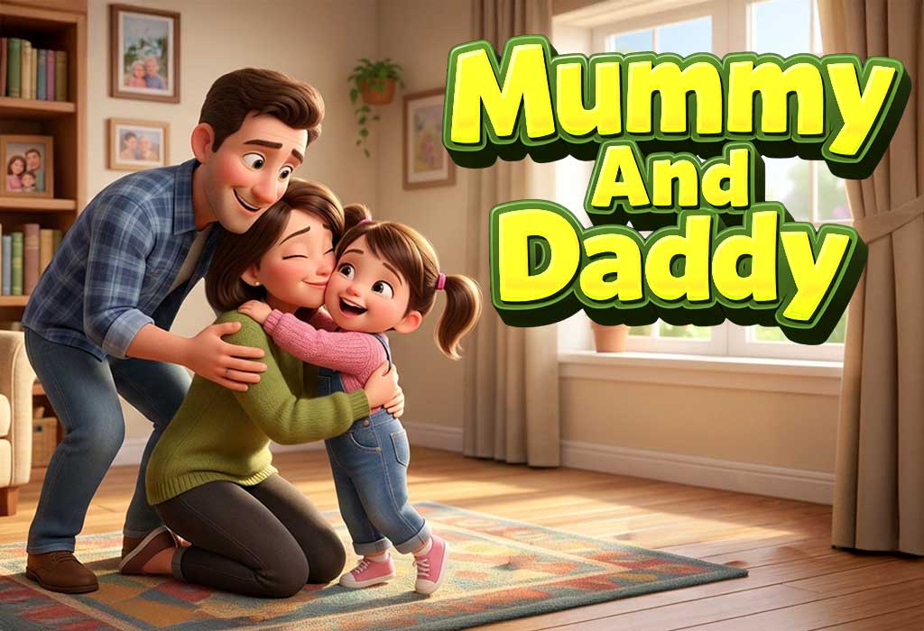 The Mummy And Daddy rhyme is a modern nursery rhyme commonly used in preschools and early childhood learning programs. Its exact origin and author are unknown, but it is widely shared in children’s learning resources and parenting platforms. The rhyme gained popularity because of its simple wording and emotional theme about a child’s love for their parents. Over time, teachers and parents around the world began using it to help children express affection and understand family relationships. Because of its simplicity, it is often one of the first rhymes taught to toddlers and preschoolers. The rhyme is usually sung or recited in classrooms, homes, and daycare centers.