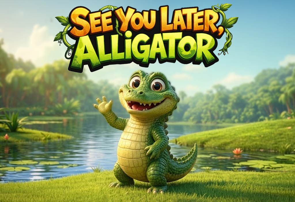The phrase “See you later, alligator” became popular in American slang during the early 1950s as a fun way to say goodbye. Over time, children and teachers added more rhyming animal lines, turning the phrase into a playful rhyme used in classrooms and homes. A famous rock and roll song titled “See You Later, Alligator” was written by Robert Charles Guidry, known as Bobby Charles, and recorded in 1955, later becoming a hit when performed by Bill Haley & His Comets in 1956. The catchy phrase helped spread the rhyme’s popularity, and it eventually became a fun children’s goodbye song.
