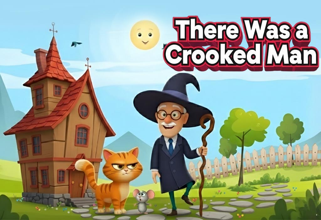 “There Was a Crooked Man” is a classic nursery rhyme that tells a short and curious story about a man who lives in a crooked world where everything seems a little bent or unusual. Children enjoy this rhyme because of its playful repetition, rhythmic flow, and silly idea that even a mouse and a cat can live together peacefully. The simple language and strong rhyme pattern make it easy for young kids to listen, remember, and recite along with adults. This rhyme supports early learning by helping children recognize rhyming words, build listening skills, and improve memory. It also sparks imagination, as kids picture the crooked house, crooked stair, and unexpected ending. Parents and teachers often use this rhyme to introduce rhythm, sequencing, and fun storytelling in early childhood learning.