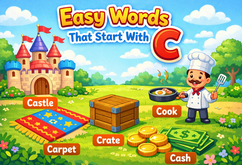 Young children learn best when words are short clear and connected to daily life. These easy words beginning with c help kids recognize sounds quickly and build early reading confidence. Just like learning simple words that begin with b, practicing small familiar words makes language feel friendly and fun.