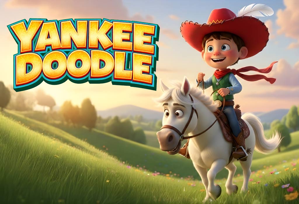 Yankee Doodle is a cheerful and lively nursery rhyme that tells the playful story of a man named Yankee Doodle who rides into town on a pony, wearing a feather in his cap and calling it “macaroni.” The rhyme is filled with humor, rhythm, and simple storytelling that instantly captures children’s attention. Kids enjoy singing it because of its catchy tune and funny imagery, which makes it easy to remember and repeat. For parents and teachers, this rhyme is a wonderful tool for early learning. It helps children build listening skills, improve memory, and recognize rhyming words. The repetitive lines also encourage language development and pronunciation practice. Singing along with actions makes the experience even more engaging, supporting coordination and confidence in young learners.